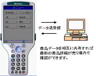 ![]() LANで接続されたレジスターに商品情報を送り込む |
